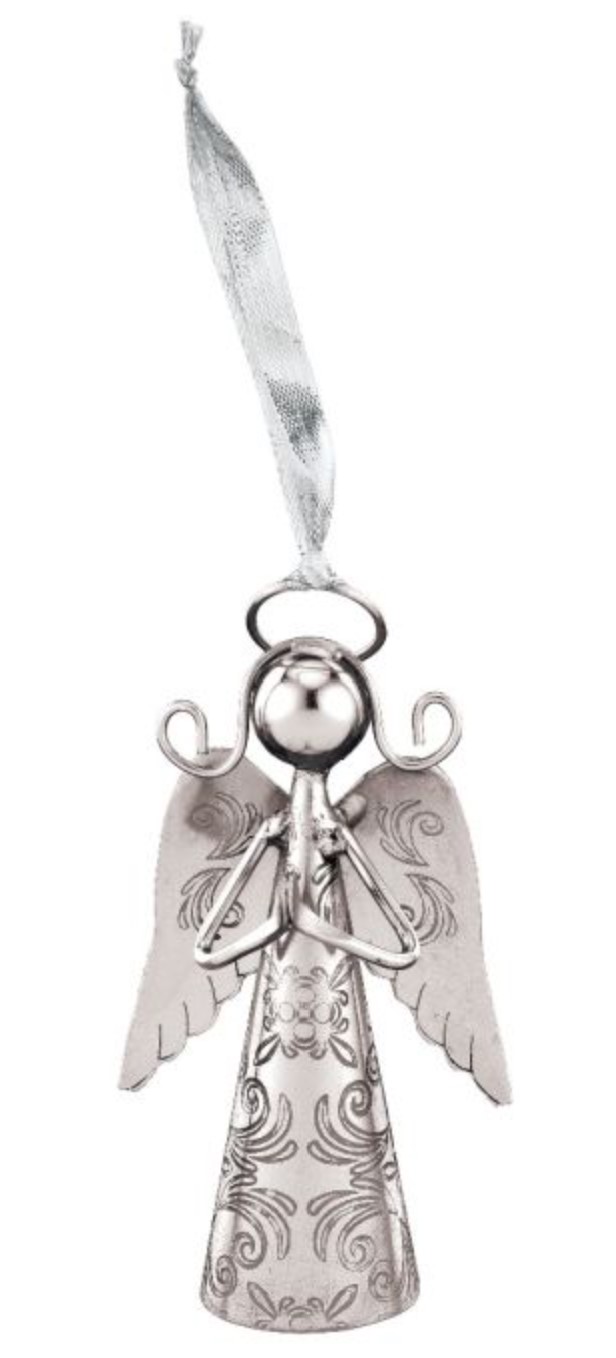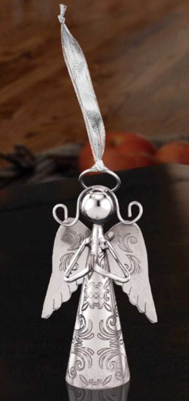 A perfect small décor or gift item. Gracefully hand-crafted with intricate design patterns etched in the nickel-plated stainless steel, this piece comes with a soft and sweet sounding bell in the body. Includes a silver ribbon to use as an ornament.