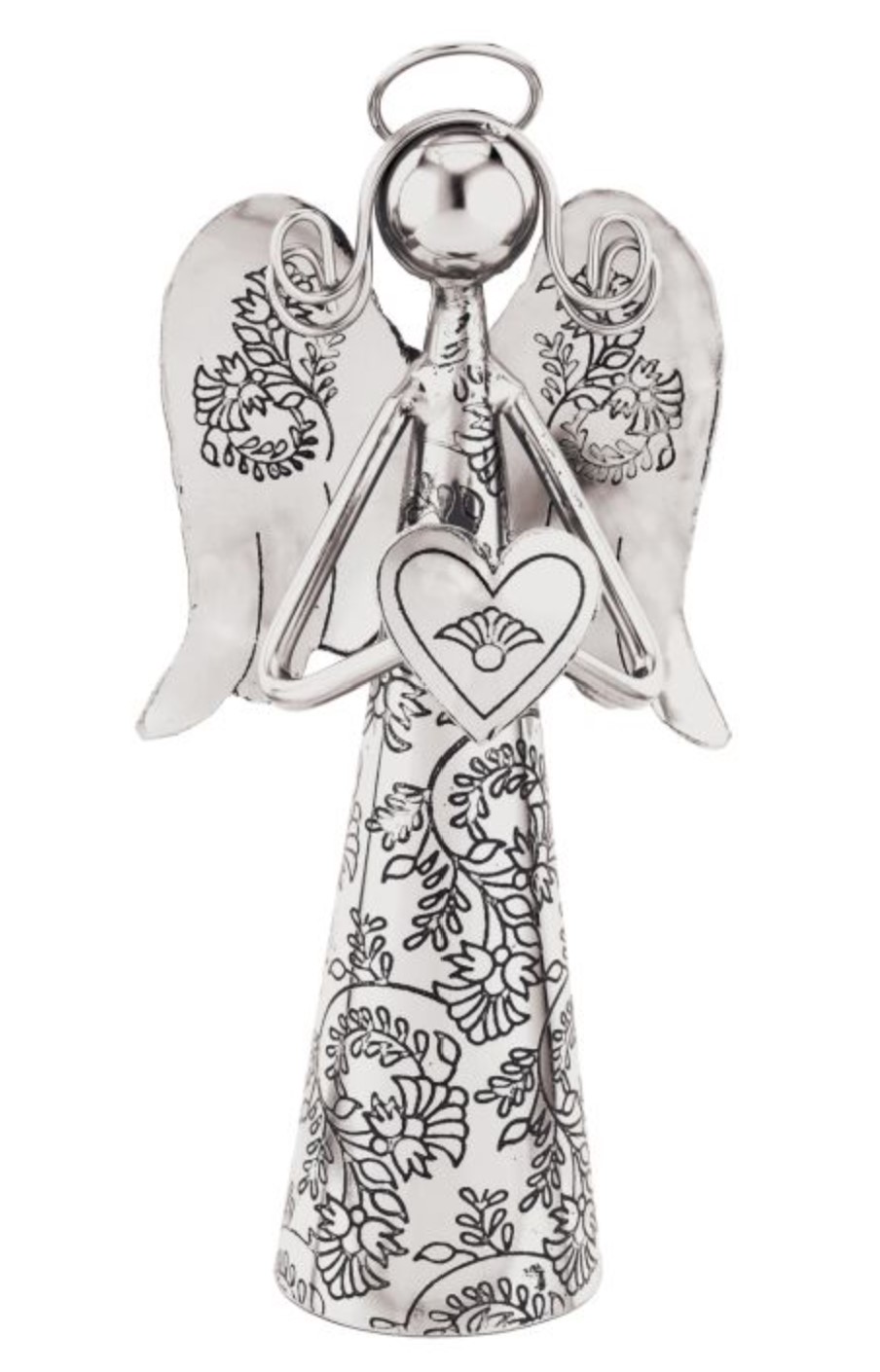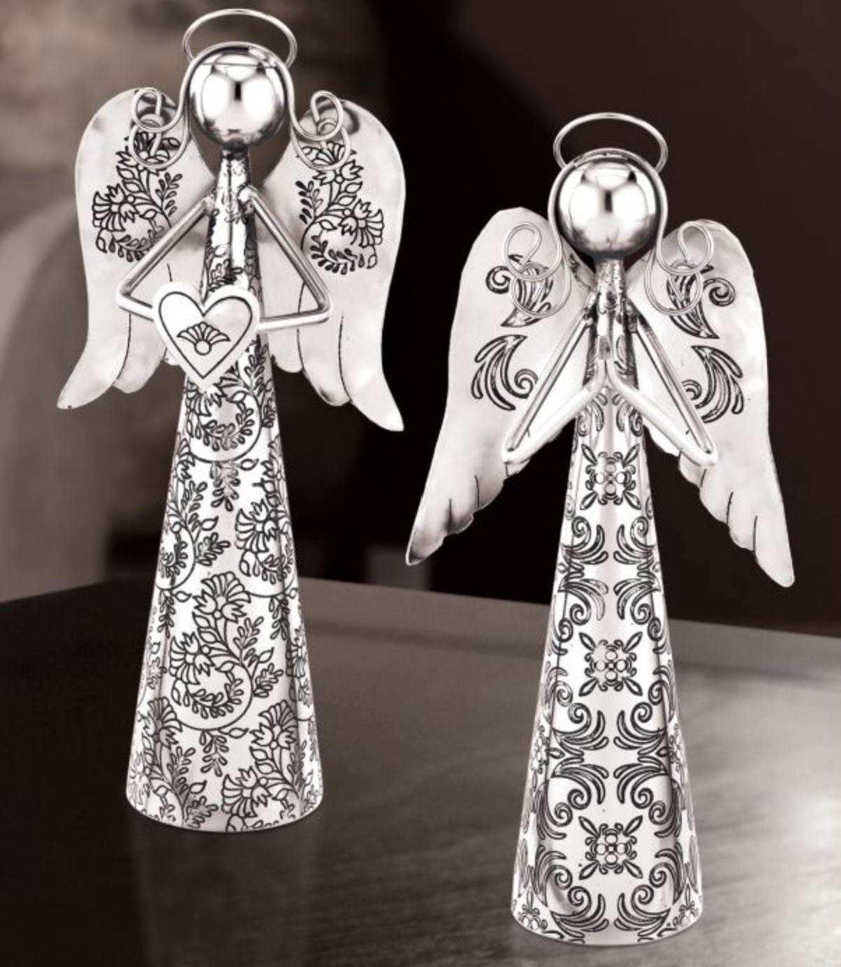 A perfect small décor or gift item. Gracefully hand-crafted with intricate design patterns etched in the nickel-plated stainless steel, this piece comes with a soft and sweet sounding bell in the body. Includes a silver ribbon to use as an ornament.
