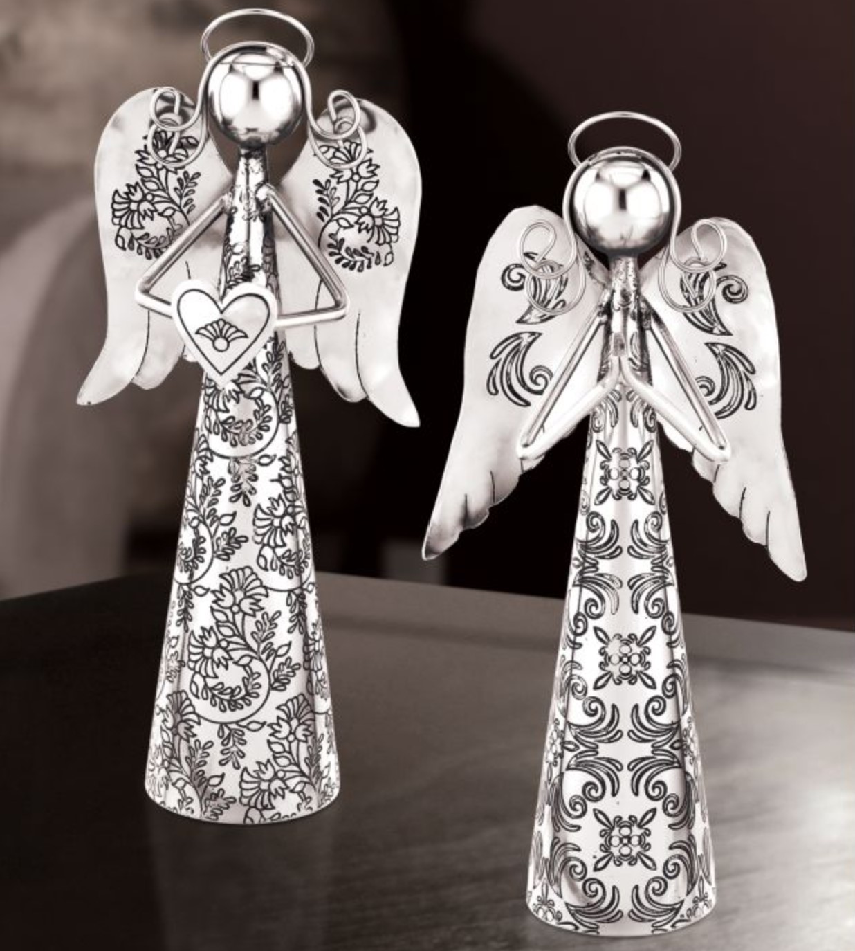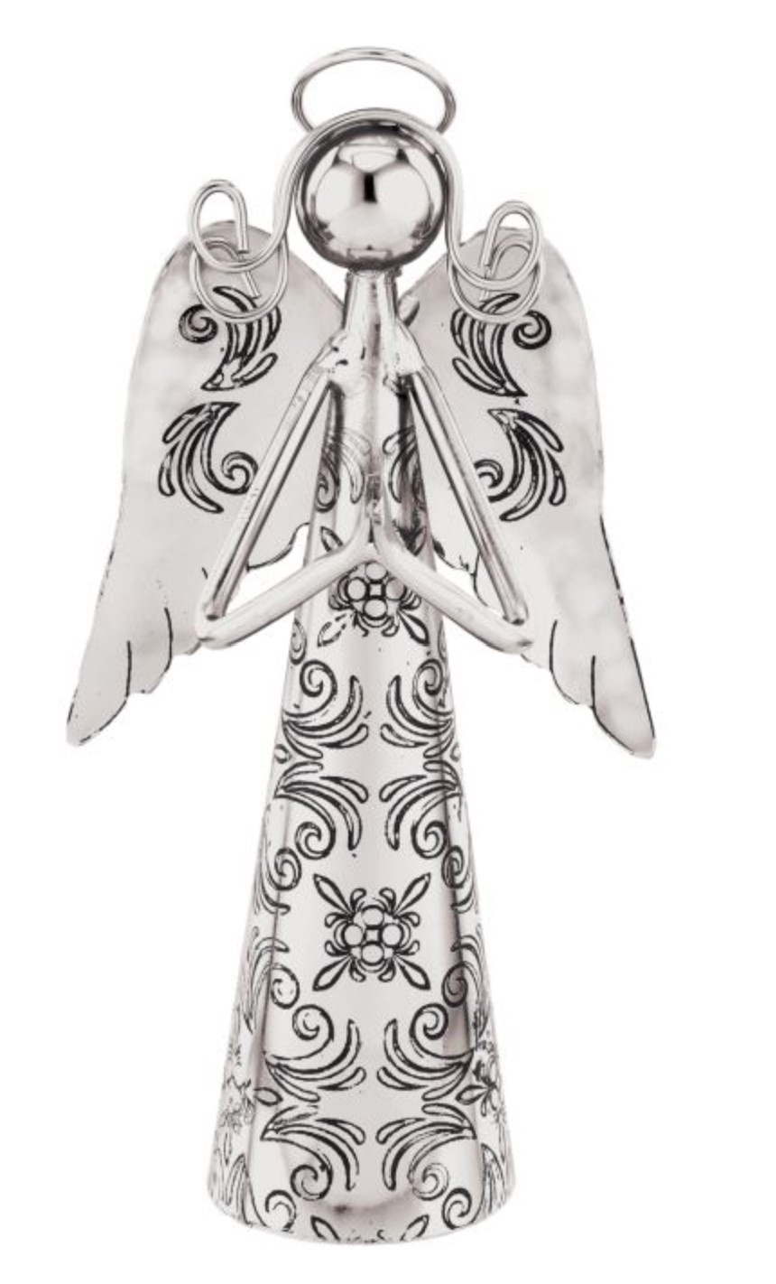 A perfect small décor or gift item. Gracefully hand-crafted with intricate design patterns etched in the nickel-plated stainless steel, this piece comes with a soft and sweet sounding bell in the body. Includes a silver ribbon to use as an ornament.