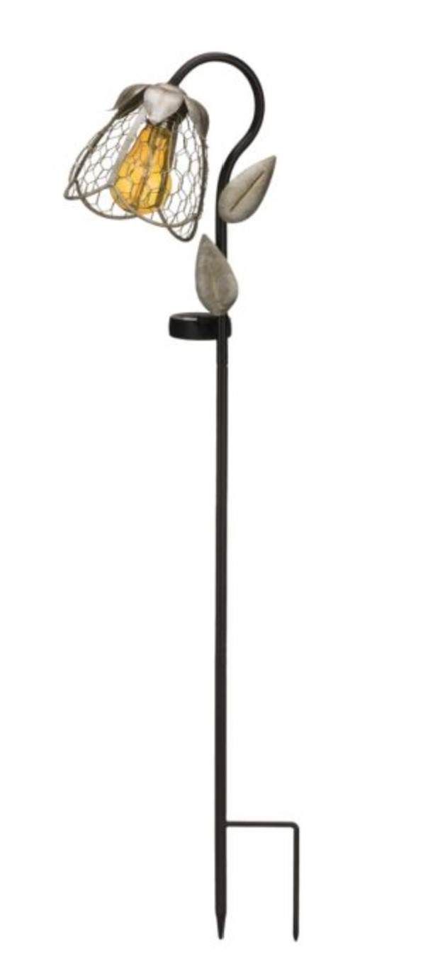 A vintage style solar powered Edison bulb will light up at night encased by a chicken wire flower body. Finished in in the classic galvanized metal color.