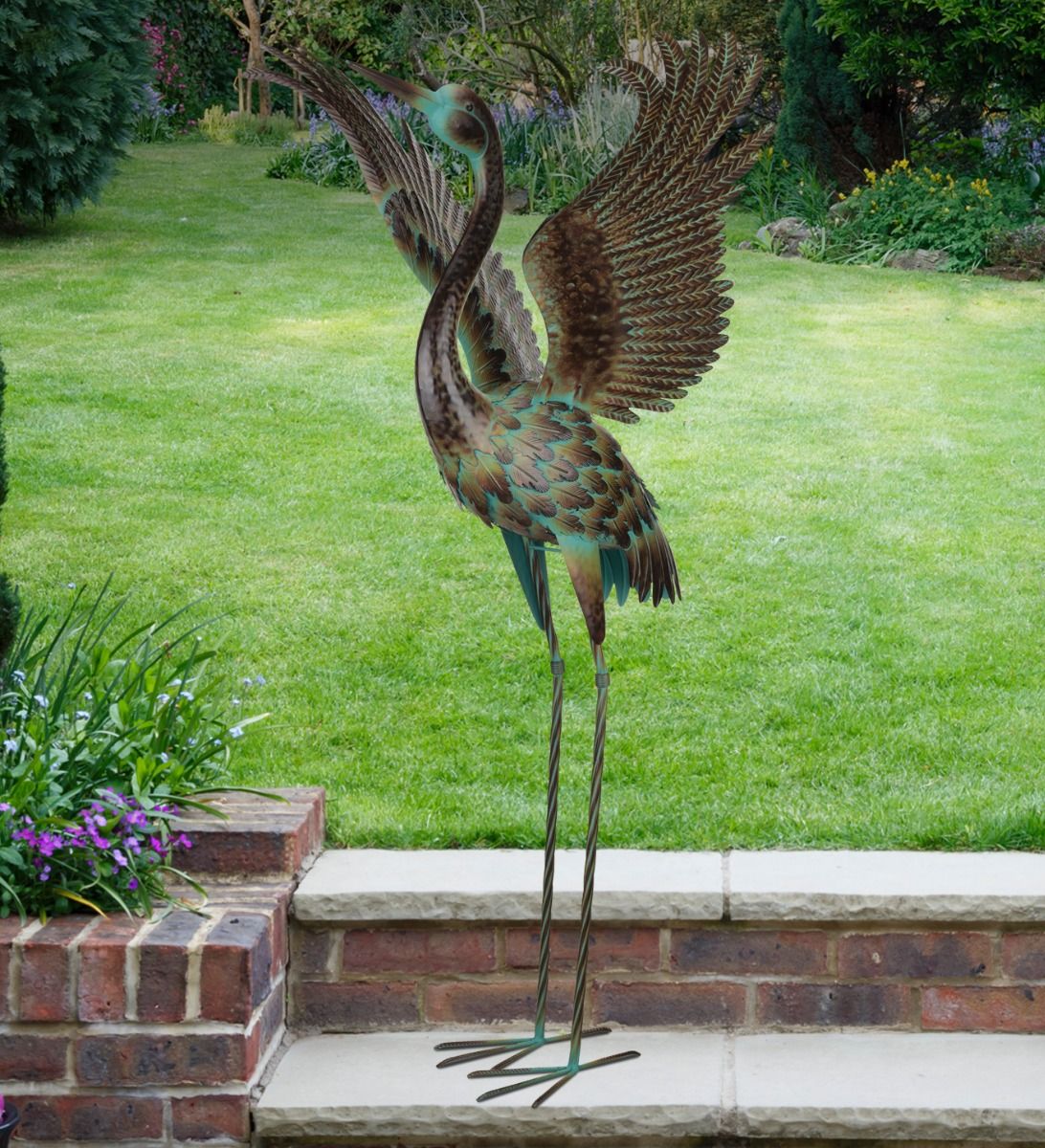Green Patina Crane - Wing Up