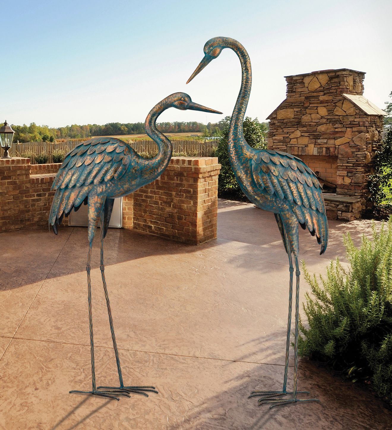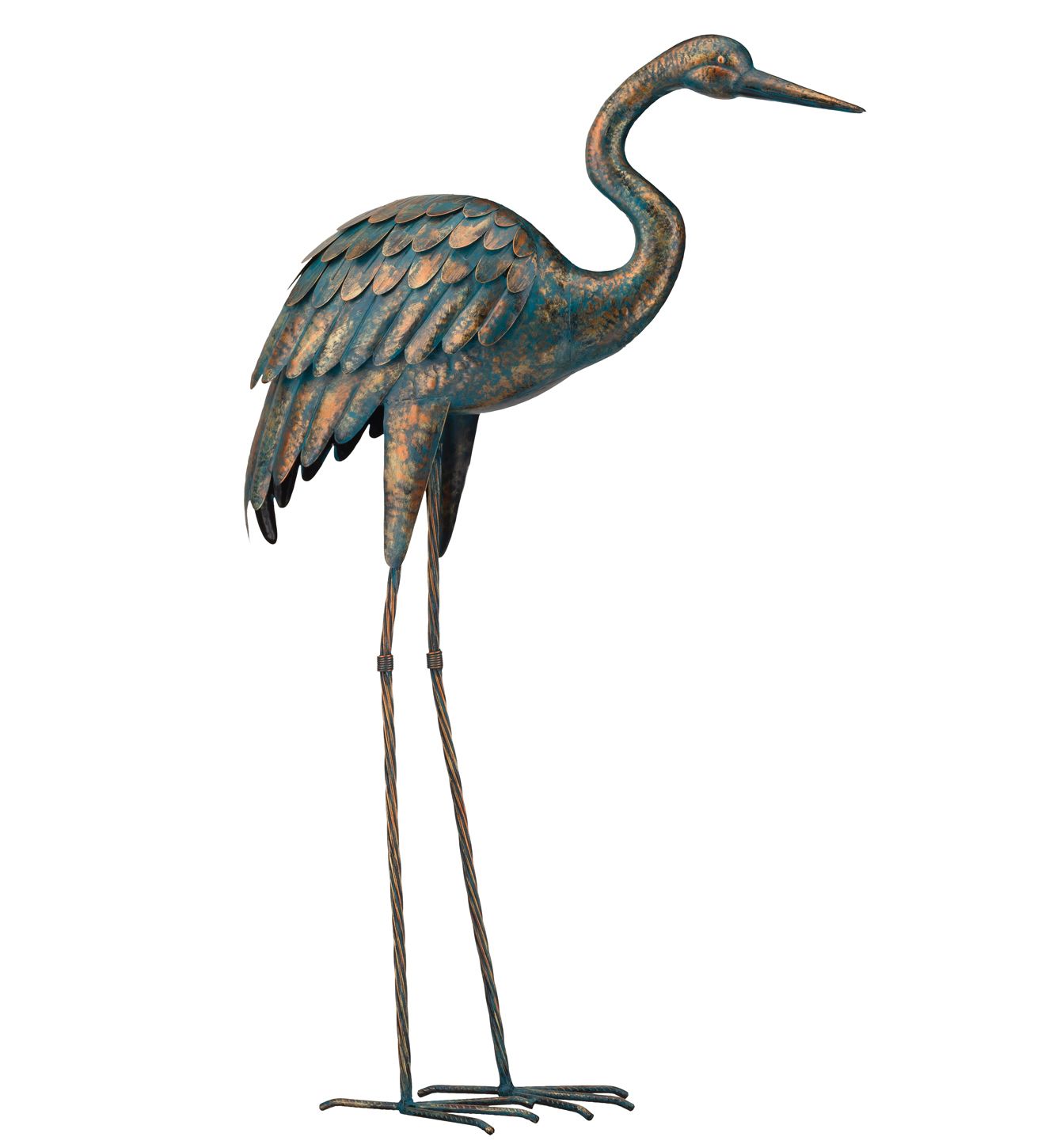 The 44" Patina Crane is an impressive full size larger bird sculpture. The distinctive multi-colored patina finish makes this piece glisten in the sun.