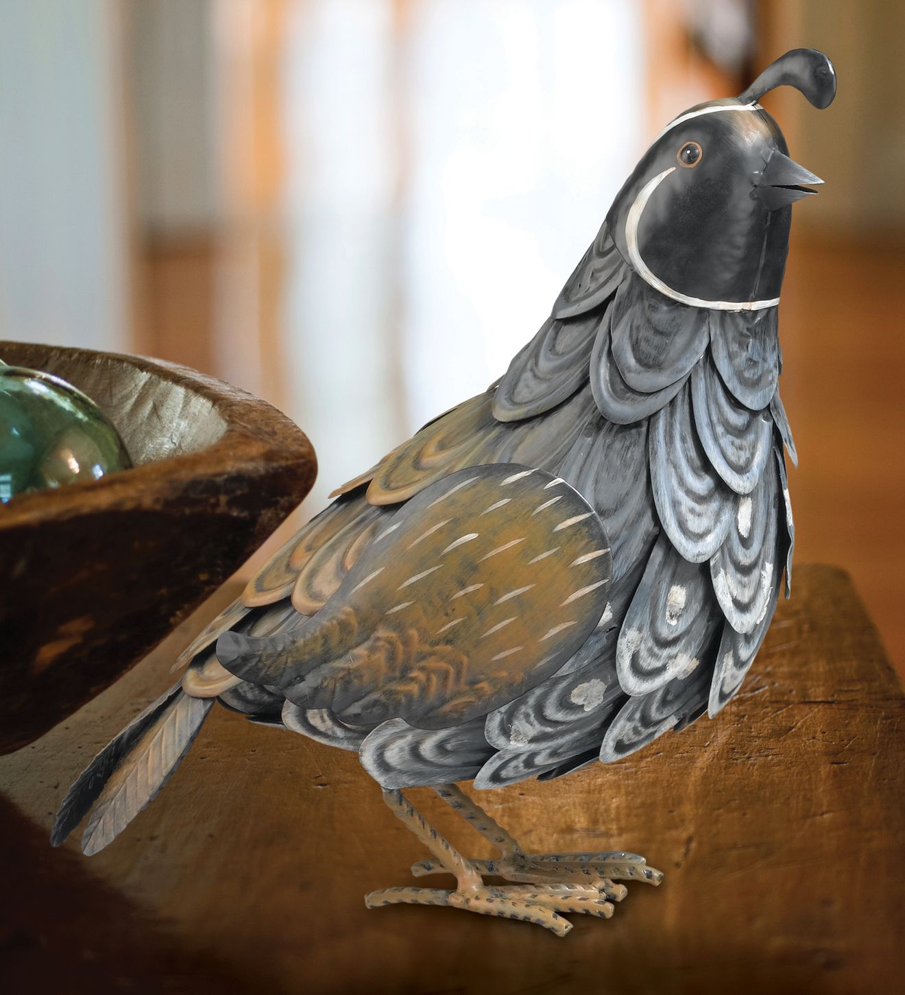This crafted metal Quail will fool guests into believing that it's real. The feather detail is exquisite with the use of different textures, colors and finishes.